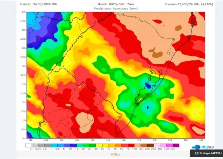 Há previsão de mais chuvas para o Rio Grande do Sul nos próximos 7 a 10 dias. De acordo com a MetSul Meteorologia, empresa especializada em consultoria climática, os registros devem ocorrer especialmente na metade norte gaúcha, “onde estão as nascentes e os principais rios que enfrentam cheias de grandes proporções neste mês de maio”.